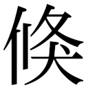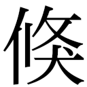 【子集中】【人字部】 【廣韻】【集韻】【韻會】【正韻】𠀤式竹切,音叔。倏忽。又犬走疾也。下从犬。俗作倐,从火,非。 廣韻(1008)