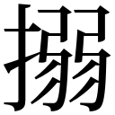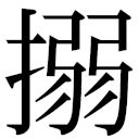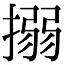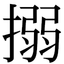 按也。 [按者,抑也。《周禮》矢人。橈之以眡其鴻殺之稱。注曰:橈搦其榦。謂按下之令曲。則强弱見矣。玄應書曰:搦猶捉也。此今義,非古義也。古義搦同橈。] 从手。弱聲。 [尼革切。《釋文》女角切。古音在五部。]
