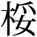 【辰集中】【木字部】 【唐韻】如錐切【集韻】【韻會】如追切,𠀤音蕤。【說文】白桵,棫也。或作㮃。【爾雅·郭註】白㮃,小木也。詳棫字註。 說文(121)Phonology 音韻