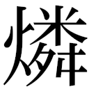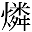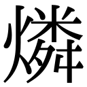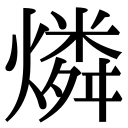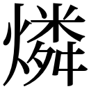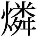 【巳集中】【火字部】 【廣韻】【集韻】【韻會】【正韻】𠀤良刃切,音吝。【說文】本作㷠。詳㷠字註。【淮南子·汜論訓】老槐生火,久血爲燐。又【詩·豳風·熠耀宵行傳】熠燿,燐也。燐,螢火也。