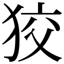 少狗也。從犬交聲。匈奴地有狡犬,巨口而黒身。 [臣鍇曰:「《淮南子》曰:『狡狗之死也,刻之若濡。』言血脈潤也。」]