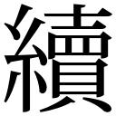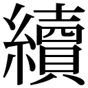 【未集中】【糸字部】 〔古文〕賡【廣韻】似足切【集韻】【韻會】【正韻】松玉切,𠀤音俗。【說文】連也。【爾雅·釋詁】繼也。【書·盤庚】予迓續乃命于天。【詩·小雅】似續妣祖。【禮·深衣】續袵鉤邊。【註】續,猶屬也。又姓。【廣韻】舜七友,有續牙。【急就篇註】續氏,晉大夫續𥳑伯之後。