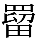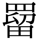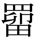 【未集中】【网字部】 【廣韻】力久切【集韻】【韻會】【正韻】力九切,𠀤音柳。【說文】曲梁,寡婦之笱,魚所留也。【爾雅·釋訓】凡曲者爲罶。【註】凡以薄爲魚笱者,名爲罶。又【釋器】嫠婦之笱,謂之罶。【註】孫炎云:曲梁,其功易,故謂之寡婦之笱耳。非寡婦所作也。【詩·小雅】魚麗于罶。羀,同。 說文(121)