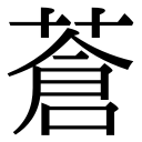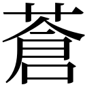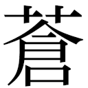 【申集上】【艸字部】 〔古文〕𡶍𦭆【唐韻】七岡切【正韻】千剛切,𠀤音倉。【說文】草色也。【易·說卦傳】震爲蒼筤竹。【臨川吳氏註】蒼,深靑色。【詩·王風】悠悠蒼天。【禮·玉藻】大夫佩水蒼玉。【疏】似水之蒼而雜有文。又【博雅】茂也。【書·益稷篇】至于海隅蒼生。【傳】蒼蒼然生草木。