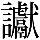【酉集上】【言字部】 【廣韻】【集韻】【韻會】【正韻】𠀤魚列切,音孼。議罪也。評獄也。【禮·文王世子】獄成,有司讞于公。【疏】言白也。【𨻰註】議𠛬也。【前漢·景帝紀】諸獄疑若,雖文致於法,而於人心不厭者,輒讞之。【師古註】讞,平議也。【後漢·斐楷傳】州郡翫習,欲避請讞之煩。【註】廣雅曰:讞,疑也。謂罪有疑者,讞於廷尉也。【宋史·選舉志】司馬光奏設十科舉士,十曰練習法令能斷請讞科。又【廣韻】魚蹇切【集韻】【韻會】語蹇切。𠀤孼上聲。