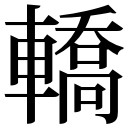 【酉集下】【車字部】 【廣韻】巨嬌切【集韻】【韻會】渠嬌切【正韻】祁堯切,𠀤音橋。【玉篇】小車也。【韻會】竹輿也。【前漢·嚴助傳】輿轎而隃嶺。【註】隘路車也。今竹輿。又與橋通。【史記·河渠書】山行卽橋。【正字通】卽轎也。蓋今之肩輿,謂其平如橋也。