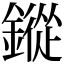 【戌集上】【金字部】 【唐韻】【集韻】𠀤七恭切,音樅。【說文】矛也。【集韻】一曰矟小者。【揚子·方言】矛,吳揚江淮南楚五湖之閒。謂之鍦,或謂之鋋,或謂之鏦。又【前漢·南粵傳】欲鏦嘉以矛。【註】鏦,音蔥。謂撞刺之也。