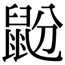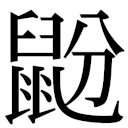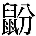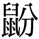 【亥集下】【鼠字部】 【唐韻】【正韻】房吻切【集韻】【韻會】父吻切,𠀤音憤。【說文】地行鼠,伯勞所化也。一曰鼴鼠。【爾雅·釋獸】鼢鼠。【註】地中行者。【疏】所謂犁鼠者,卽此也。又【廣韻】【集韻】𠀤符分切,音汾。【廣韻】田中鼠。