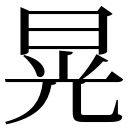 【辰集上】【日字部】 【廣韻】同晄。【博雅】明也,暉也。【釋名】光,晃也,晃晃然也。【左思·吳都賦】炫晃芬馥。【郭璞·江賦】或爆采以晃淵。【正字通】日光耀也。 博雅(232)Phonology 音韻
