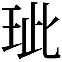 【午集上】【玉字部】 【唐韻】千禮切【韻會】【正韻】此禮切,𠀤音泚。【說文】玉色鮮也。引《詩》:新臺有玼。◎按《詩·邶風》今本作泚。又【正字通】凡物之鮮盛者皆曰玼。【詩·鄘風】玼兮玼兮,其之翟也。【傳】翟衣,夫人祭服,刻繒爲翟雉形,釆畫之以爲飾。玼者,言宣姜服飾之盛,如玉色也。