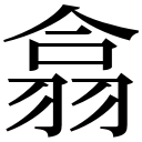 【未集中】【羽字部】 【廣韻】【正韻】許及切【集韻】【韻會】迄及切,𠀤音吸。【說文】起也。【爾雅·釋詁】翕,合也。【書·臯陶謨】翕受敷施。【詩·小雅】兄弟旣翕。又【易·繫辭】夫坤,其靜也翕。【註】斂也,聚也。